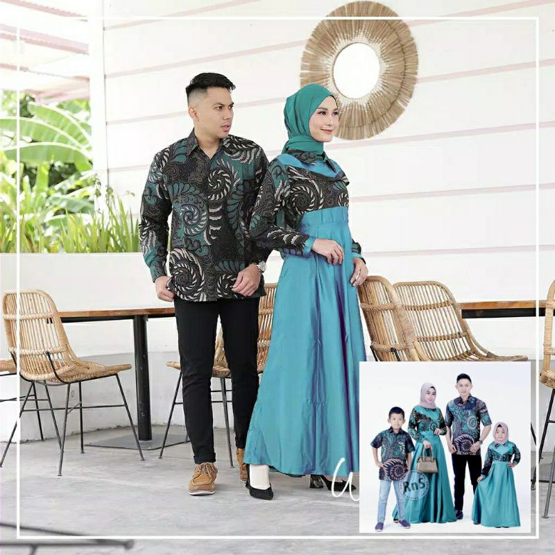 Agen Pakaian W di Kabupaten Hulu Sungai Tengah Couple Batik Family • Gamis Kombinasi Velvet Hijau • Couple Keluarga • Kebaya dari Saroja Batik Ii Kota Pekalongan