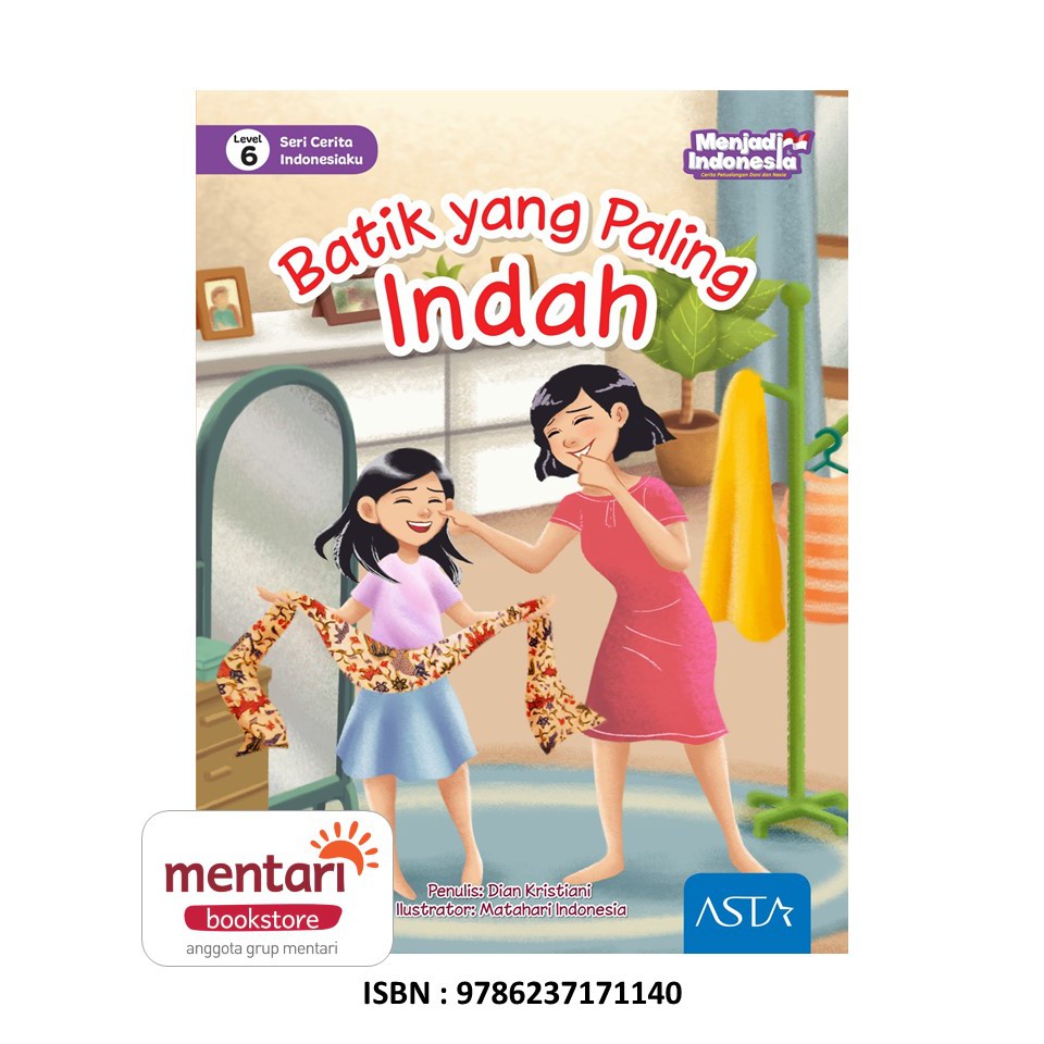Literasi Menjadi Indonesia adalah seri buku-buku cerita anak dengan kemasan yang menarik, yang bertujuan untuk mengembangkan minat baca dan daya imajinasi, meningkatkan kemampuan berbahasa, membentuk rasa empati, mengasah kecerdasan emosi dan sosial, serta menambah wawasan dan pengetahuan anak. Seri Cerita Indonesiaku yang mengangkat beragam tema seputar kekayaan budaya, adat istiadat, dan alam Indoensia. Salsa menerima kiriman batik dari Lili, sahabatnya. Wah, Senangnya! Batik itu indah sekali dan motifnya sangat unik. Ternyata batik tidak saja dapat dibuat menjadi pakaian. tetapi juga menjadi kalung, gelang, tempat pensil, dan kerjainan lainnya. Salsa dan teman-temannya sibuk membuatnya dari sisa kain batik yang ada, Mau tahu cerita keseruan Salsa dan teman-temannya ? Yuk, kita ikuti cerita mereka! Penulis : Dian Kristiani, Illustrator : Matahari Indonesia, Jumlah Kata