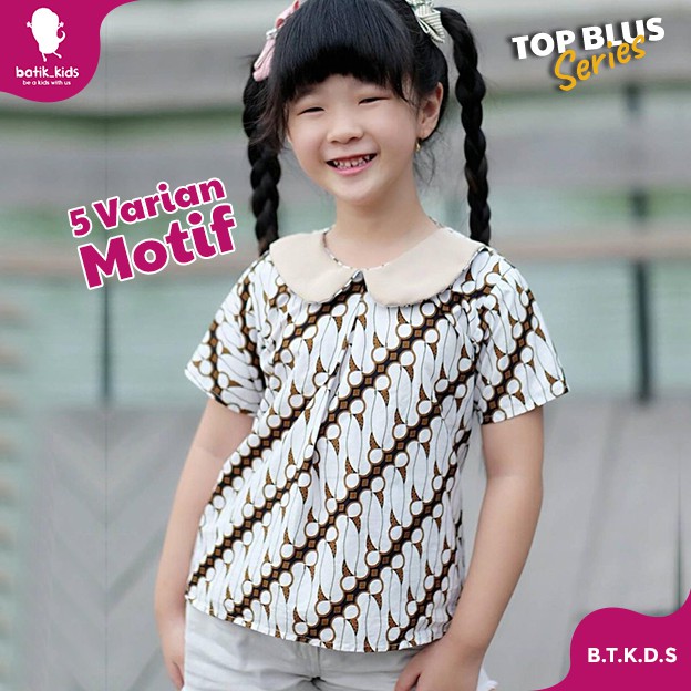 Name: Top Blus Batik Anak Berkerah Putih Cream Unik Mixing Lengan Bagus Cantik Simple Dan Nyaman Dipakai